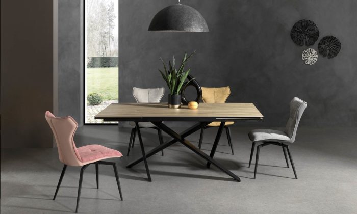 Victoria – Table rectangulaire feuille céramique et pied métal